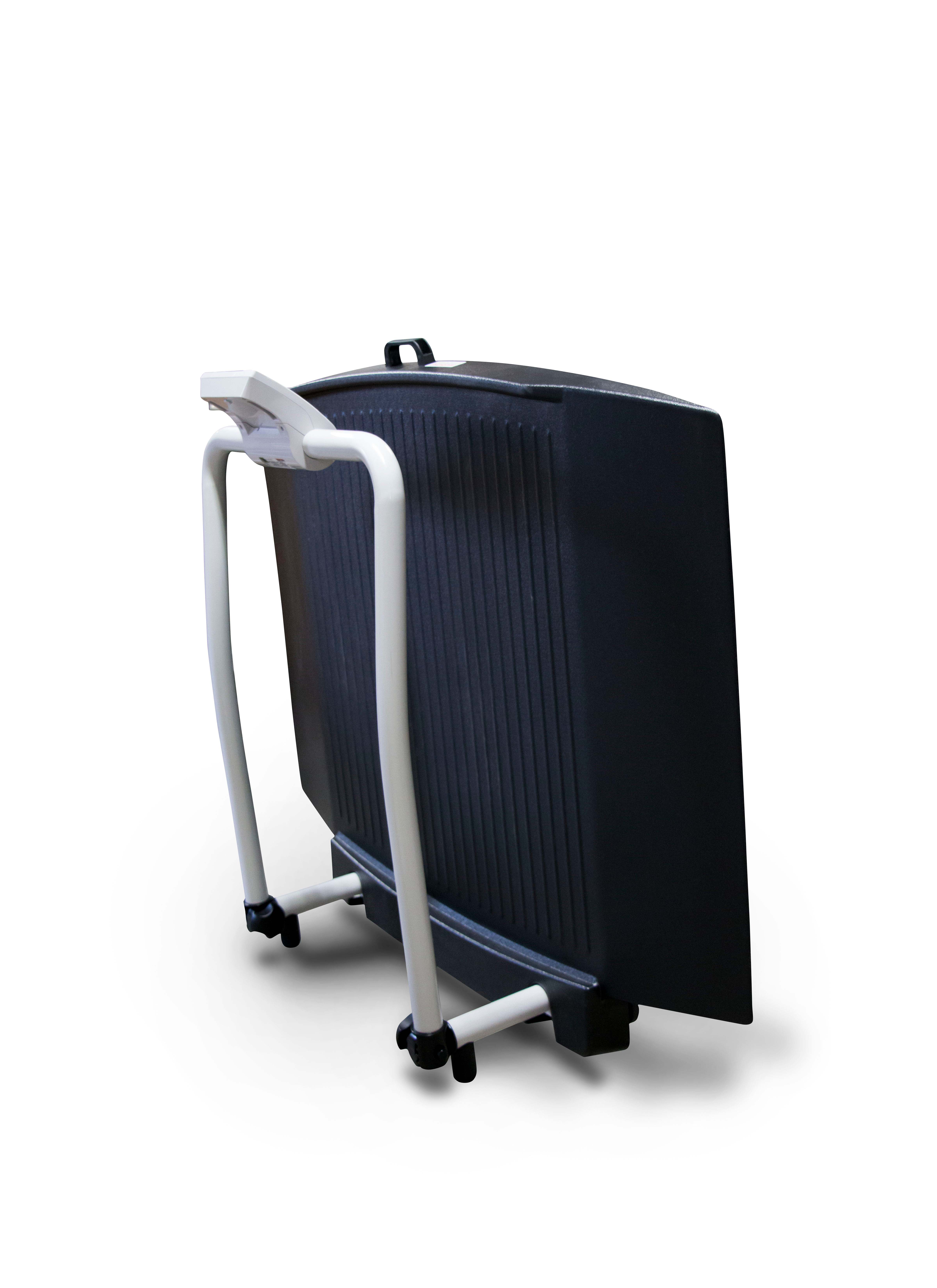 Rice Lake’s 350-10-3 dual-ramp wheelchair scale with handrail allows high-capacity, accurate weighing for a wide range of patients. Convenient keypad tare reduces errors and increases efficiency. Foldable and lightweight, this sturdy scale is easily transported on two heavy-duty rear wheels to any location.