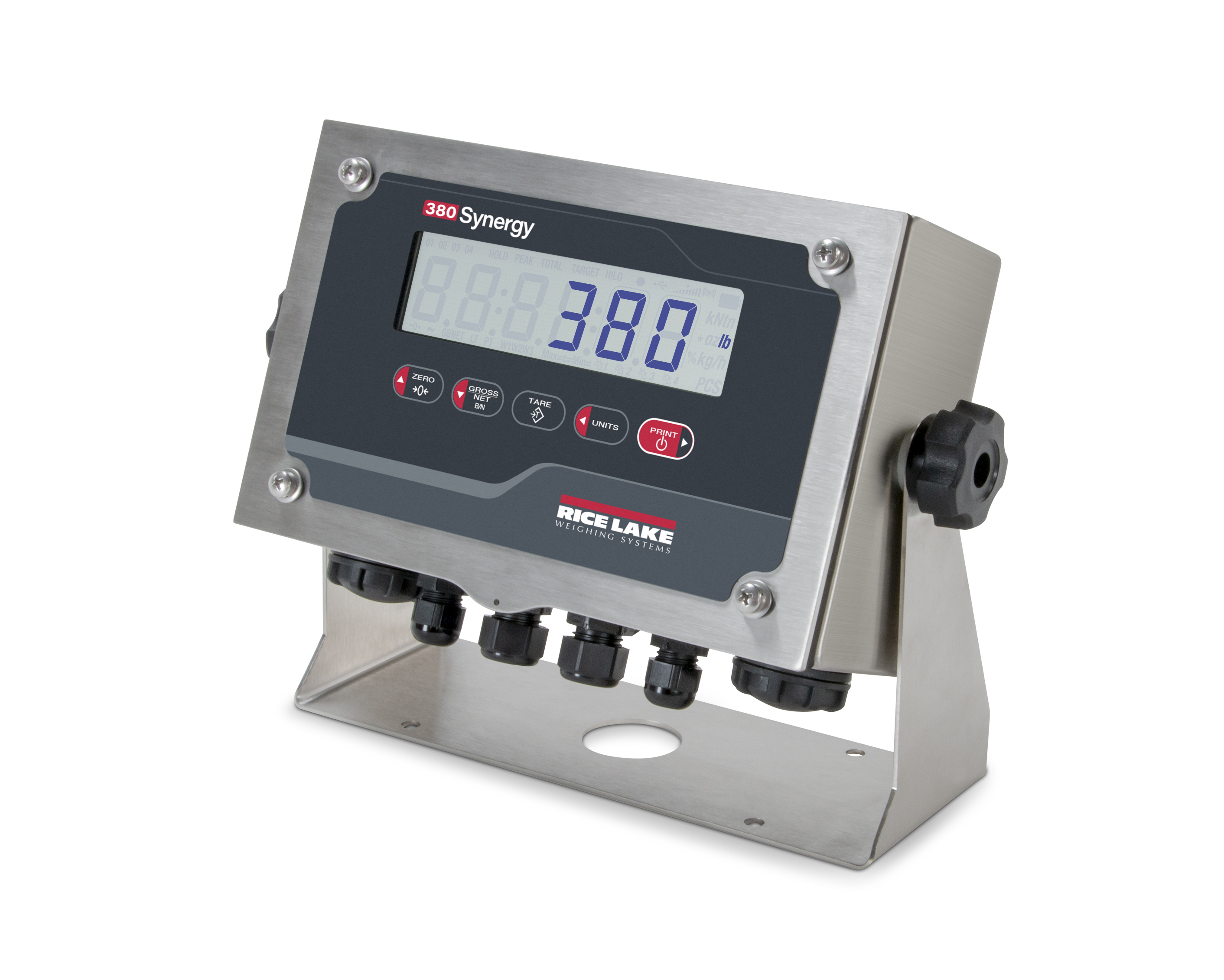 A stainless steel, IP66 enclosure means the 380 Synergy is dust-tight and can stand up to high-pressure water. A bright, six-digit LCD display makes weight data easy to see.