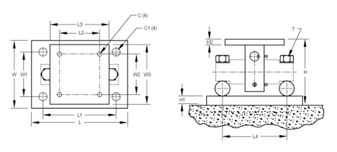 - Three or four EZ Mount 1 stainless steel compression mounts with RL72020SS stainless steel double-ended shear beam load cells