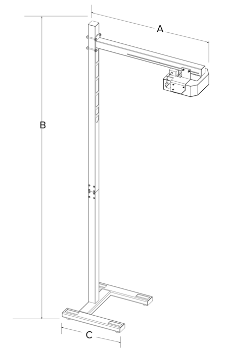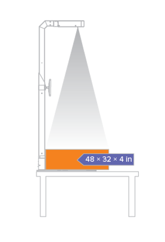 iDimension Plus uses a pre-assembled telescoping pole assembly with scanner height settings at 48 or 60 inches (1.2 or 1.5 meters) above a work surface. The second generation head is backward-compatible with the original pole assembly, making an easy upgrade path to take advantage of improved measuring capabilities. iDimension Plus is also available without a pole assembly for mounting the dimensioning head on a freestanding frame or existing structure.