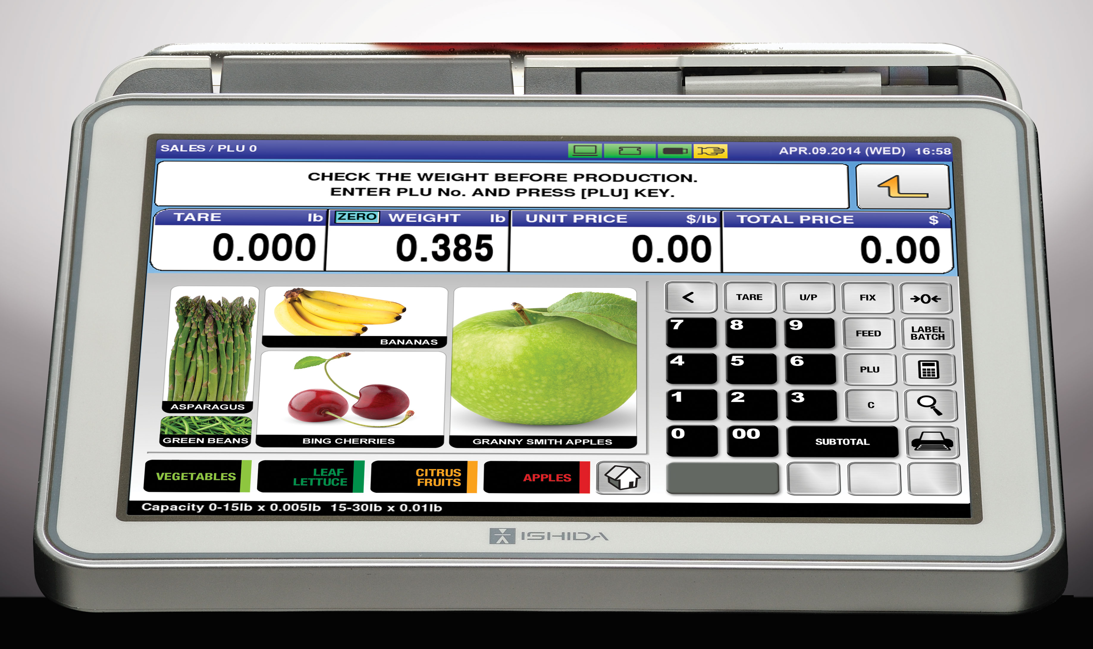 | 170096 | Retail Scale, Uni-9 SP PC Based, 15x0.005, 30x0.01lb, RF 115VAC, Ishida |