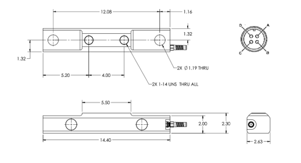 The PL9000-14.4 is ideal for underbody and body rest mounts in four- or six-point system configurations. This load cell offers higher load ratings with a single-piece bearing plate and overall length of 14 inches.
