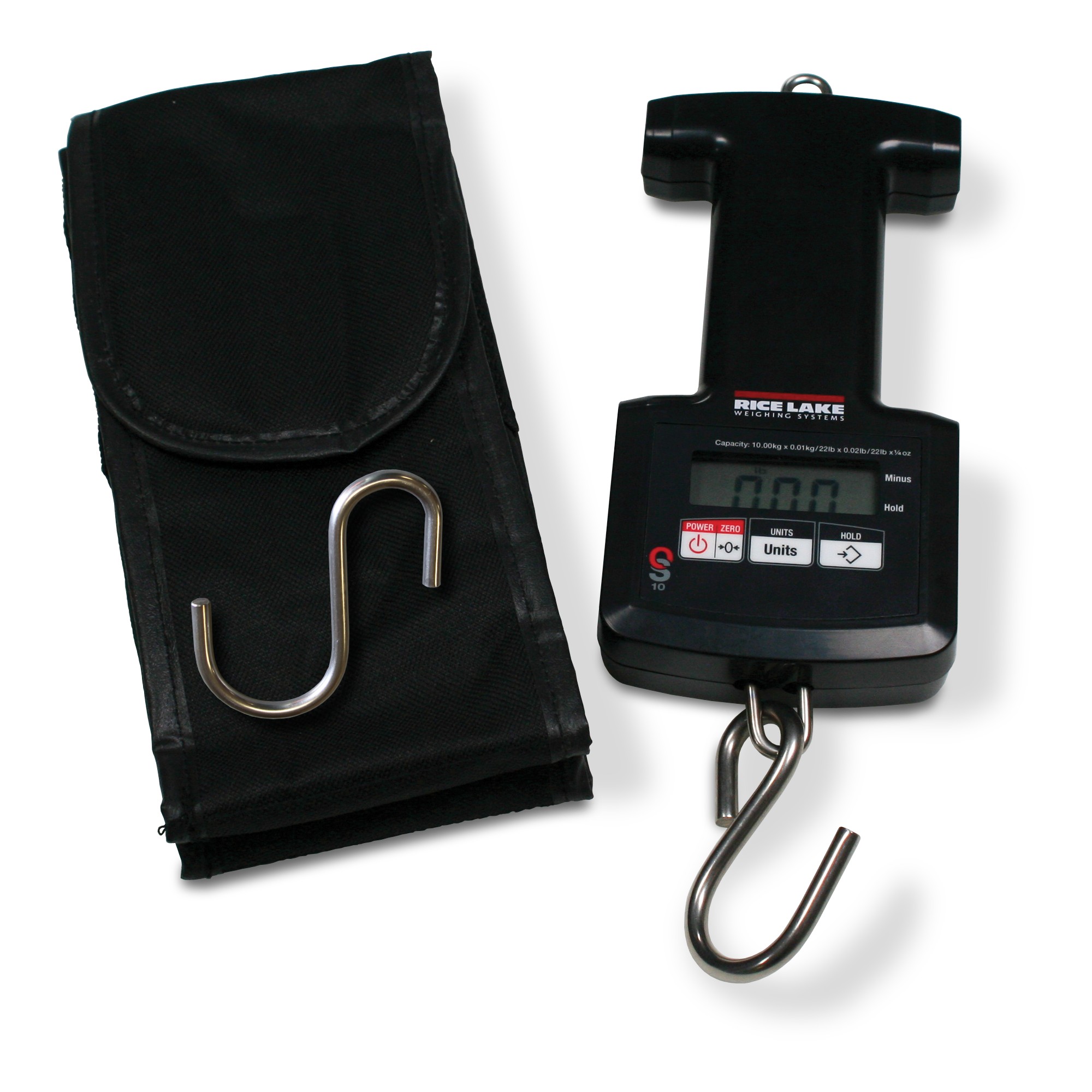 Suspend the OS scale by the sturdy steel top S-hook or hold it comfortably in your hand for weighing. This easy-to-transport scale is powered by two AA batteries—the adjustable auto-off feature assures long battery life. Carrying case and steel top S-hook are included.
