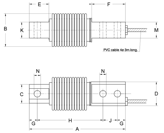 | Rated Capacity | A | B | C | D | E | F | G | H | J | K | M | N |