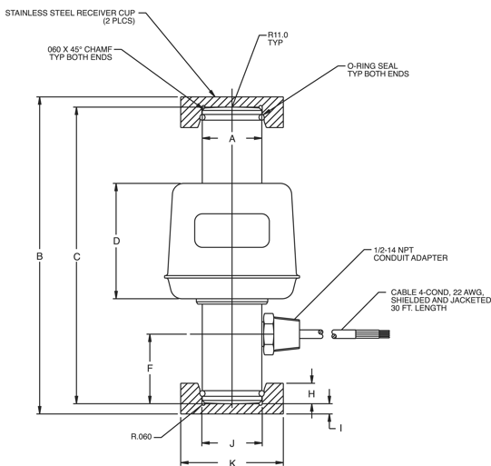 | 68918 | Load Cell,CSR RLSCA-50K 50,000lb 30ft 2mV/V 1050 OHMS EW SST WS NTEP III L 10M (includes top and bottom cups) |