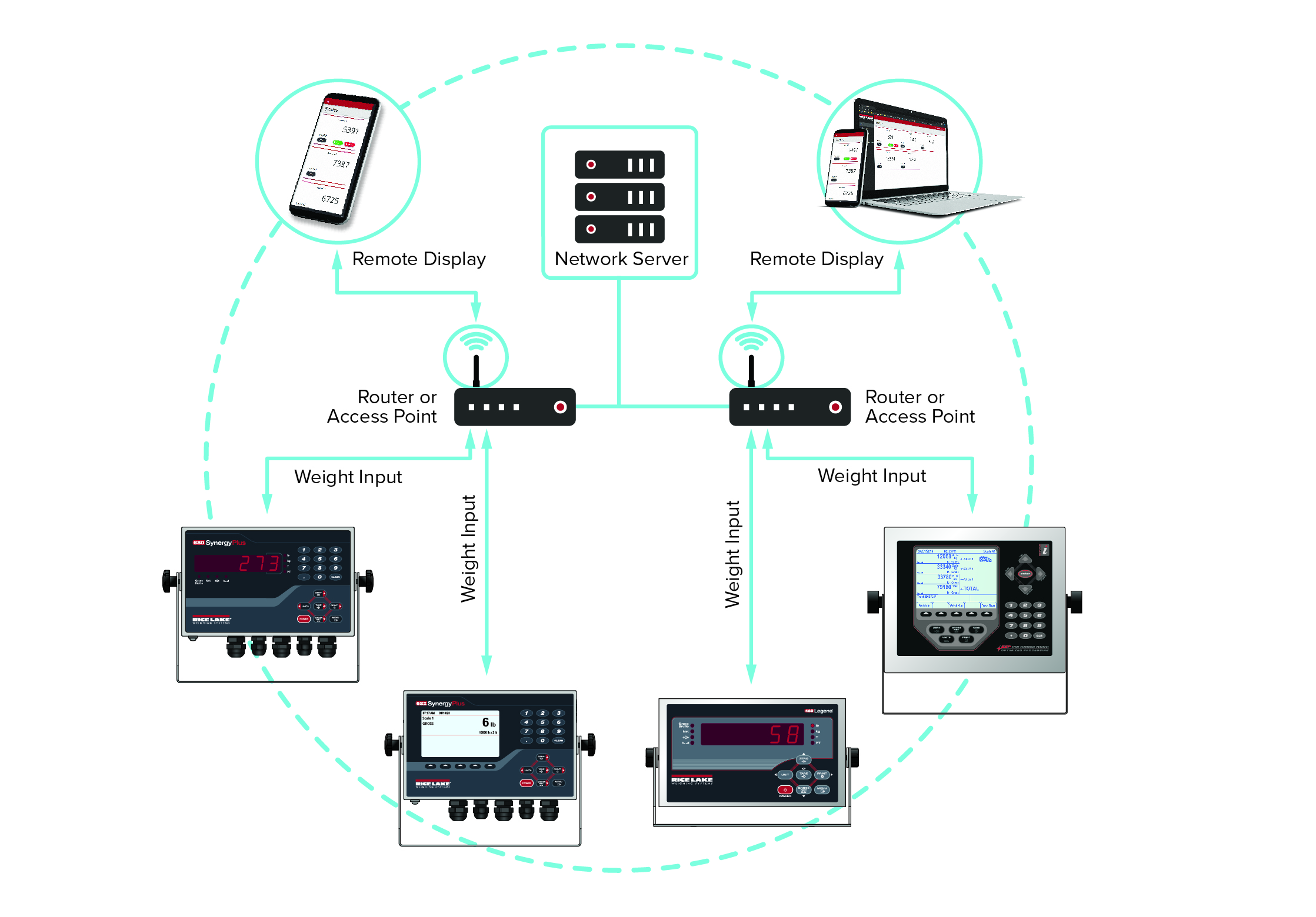Multiple users can remotely view configured scales with a licensed installation of RL Web Display software.