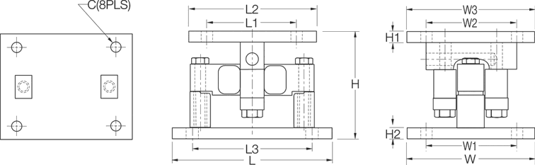 | Rated Capacity | C | H | H1 | H2 | L | L1 | L2 | L3 | W | W1 | W2 | W3 |