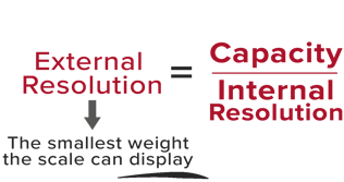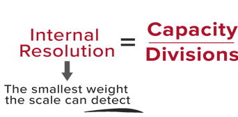 Considering the previous examples, if some screws were placed on the scale and the internal count was 210, the weight would be calculated as 0.01050 pounds because the internal count is multiplied by the internal resolution of 0.00005. The external resolution would be read as 00.01 if the desired amount of decimal points was set to five digits. The software automatically rounds off.