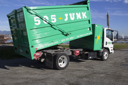Operating in the greater Vancouver, Canada area, 505-JUNK embraces green initiatives, which are rapidly gaining traction in public awareness. If recyclable or donate-able material is collected, they distribute it to appropriate recycling or donation centers. “They love that we’re able to tell them specific weights of donations,” Barry explains. “It makes their jobs a lot easier.”